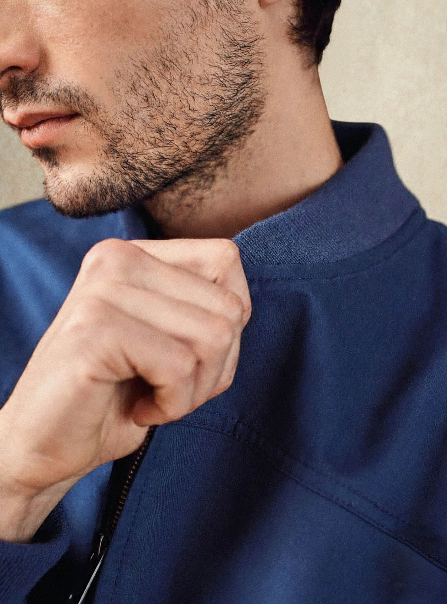 - Deux poches passepoilées devant, deux poches intérieures à double passepoil