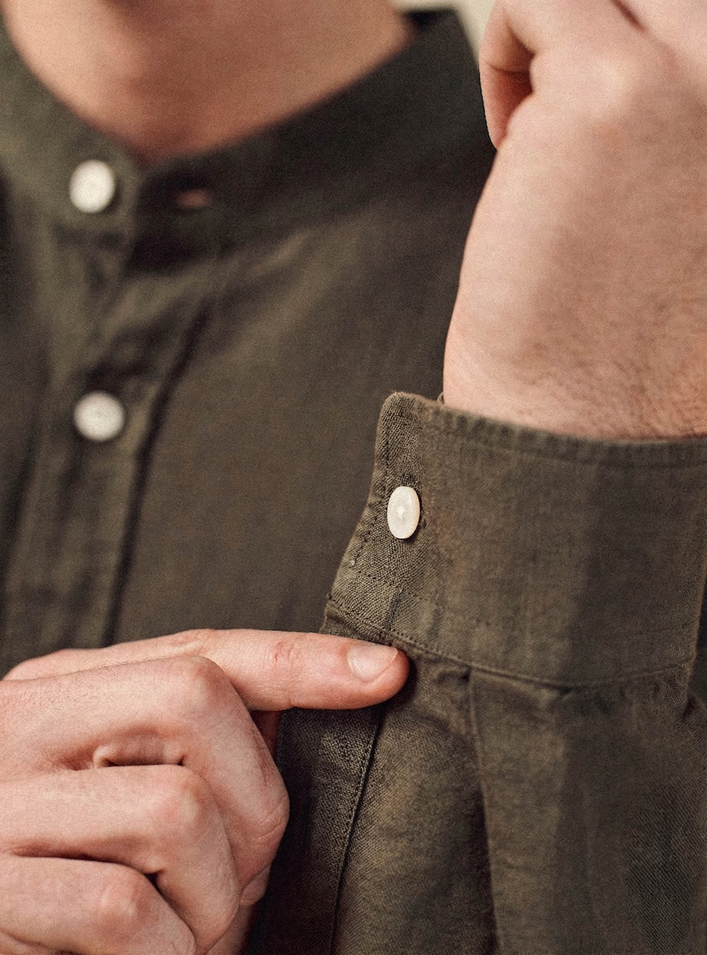- Chemise en coton lin vert kaki