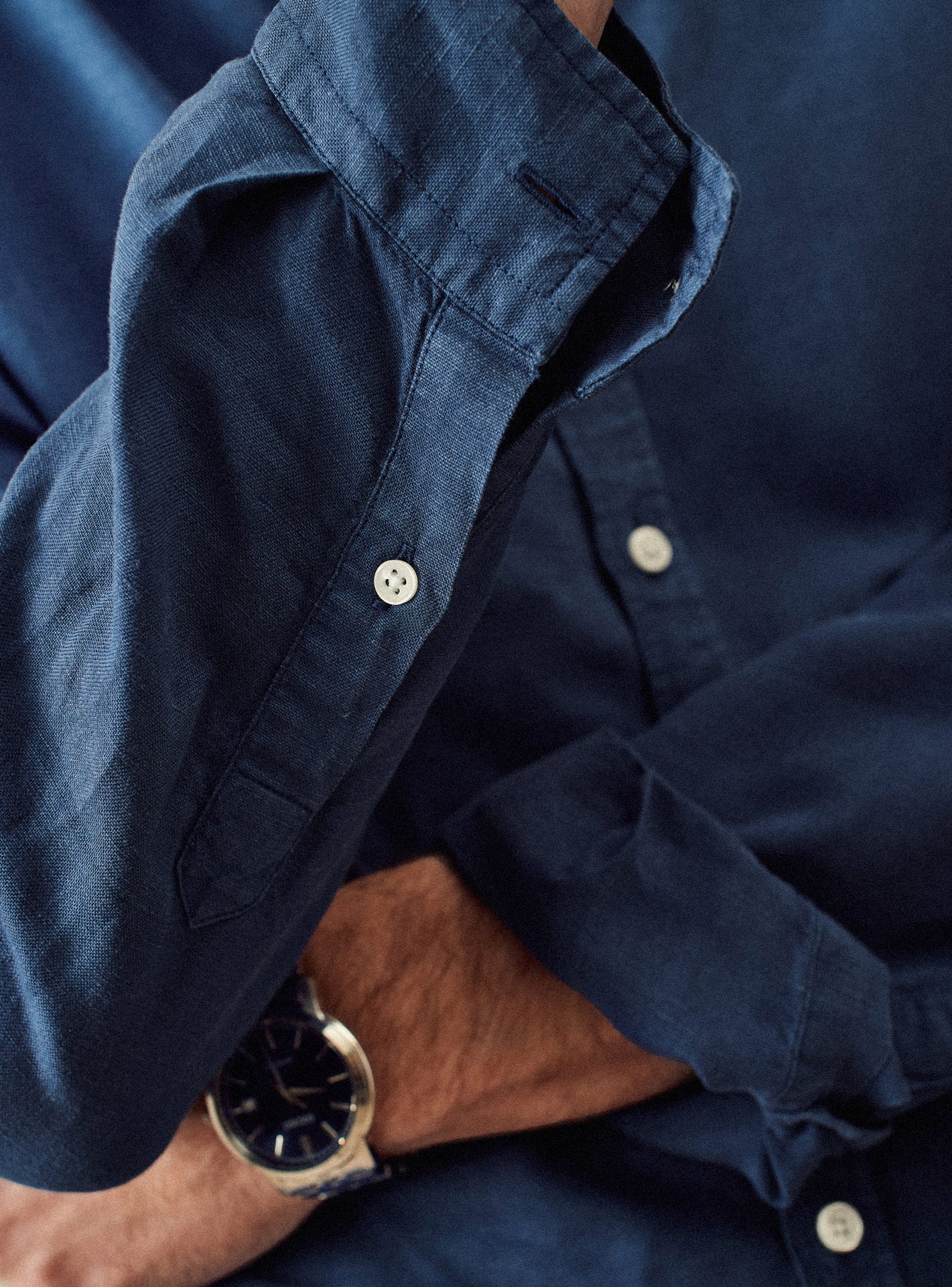 - Chemise en coton lin bleue