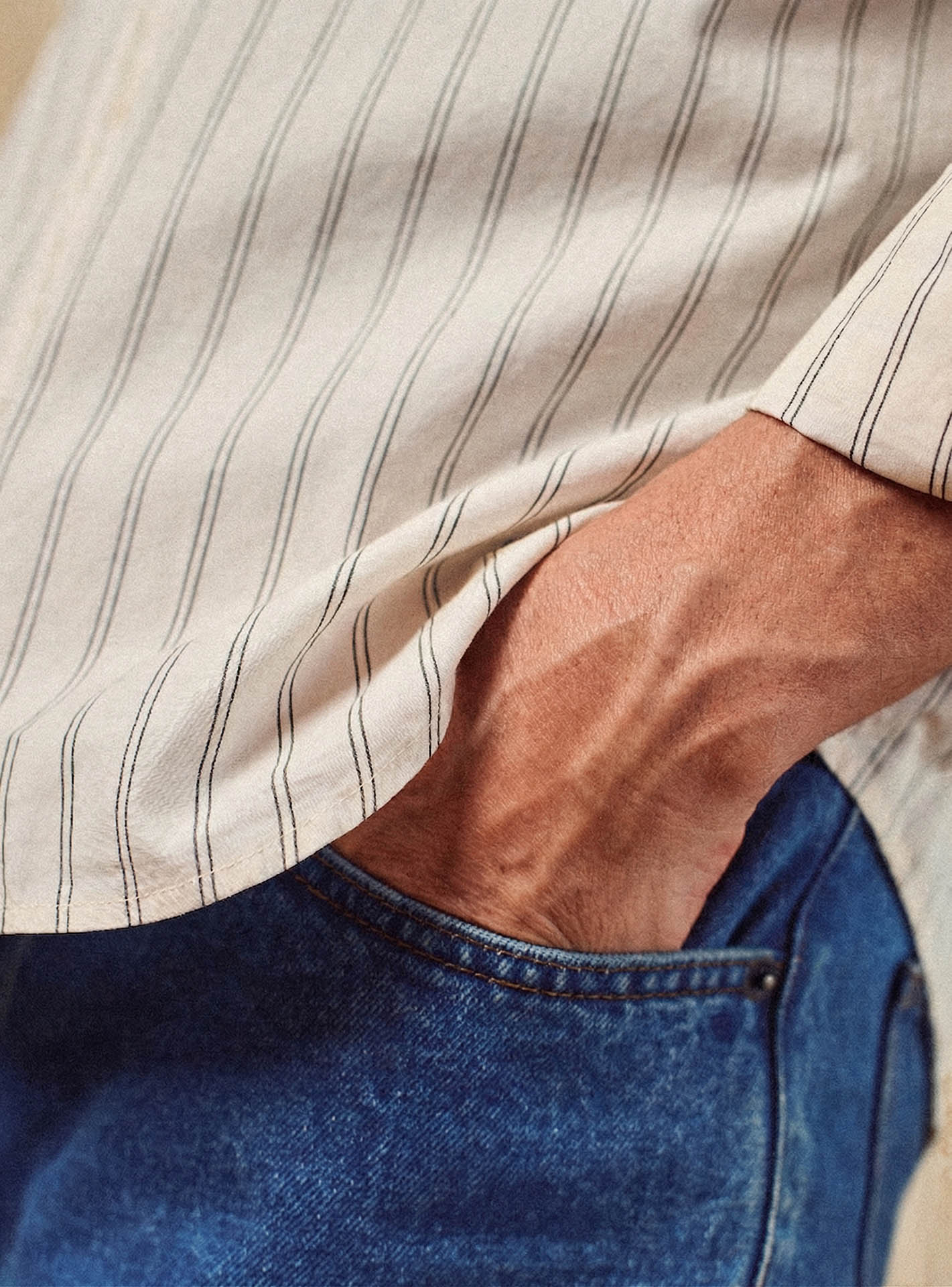 - Chemise rayée en popeline de coton beige et gris anthracite