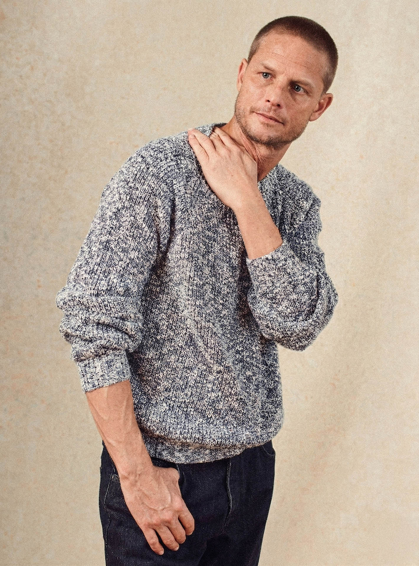 - Pull à col rond bleu marine et écru